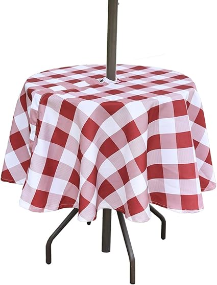 Outdoor tablecloth with umbrella hole, red checkered, spill proof umbrella hole tablecloth with zipper, 52 or 60 round, 60 x 84 & 60x120.